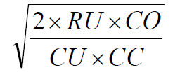 RU = required unit (kebutuhan selama satu tahun) CO = cost per order (biaya satu kali pemesanan)
