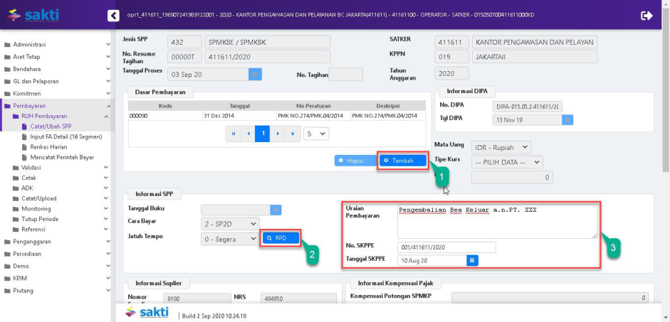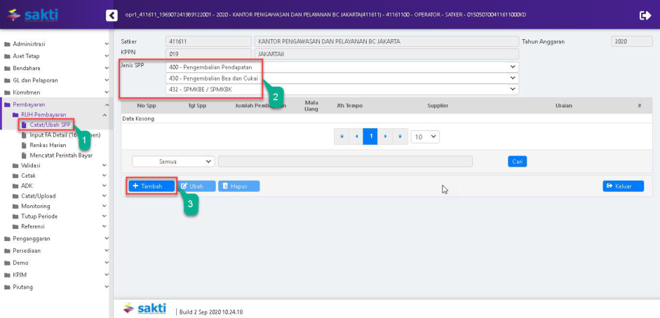 Masuk ke Modul Pembayaran Catat/Upload Catat/Upload SP2D