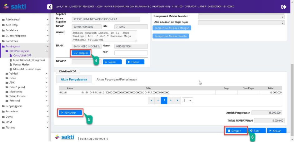 Klik tombol “RUH Akun” untuk menginput Distribusi CoA (Akun Pengeluaran dan Akun Potongan)
