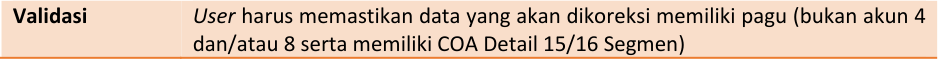 3) Untuk melakukan koreksi 12 Segmen, seperti Program, Kegiatan, KRO, dan Akun dapat