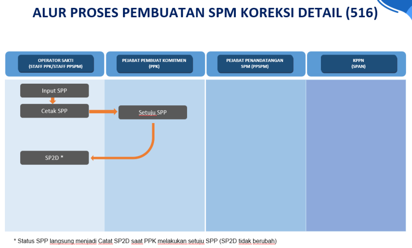 - Pada tahap ini, status SPP akan menjadi “Catat SP2D” dan proses koreksi detail COA telah selesai