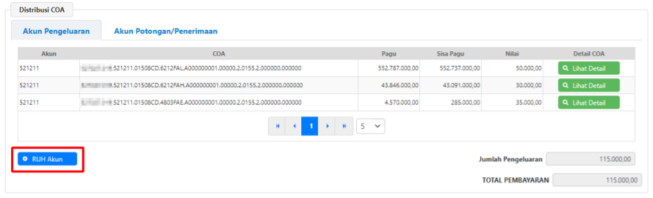 Klik RUH Akun untuk melakukan koreksi detail