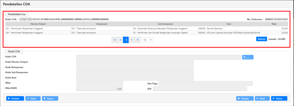 Klik tombol ‘Detail COA’