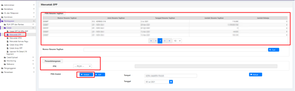 - Klik tombol “Unduh” untuk mencetak SPP.