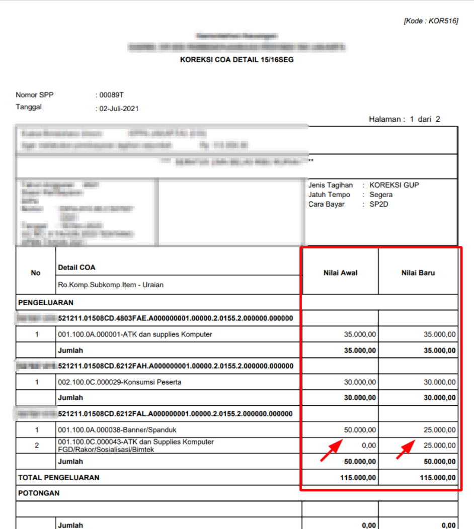 Pilih Jenis SPP 516 – Koreksi COA 15/16 Segmen