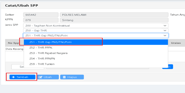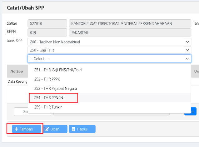 a. Pilih Jenis SPP 254 – THR PPNPN