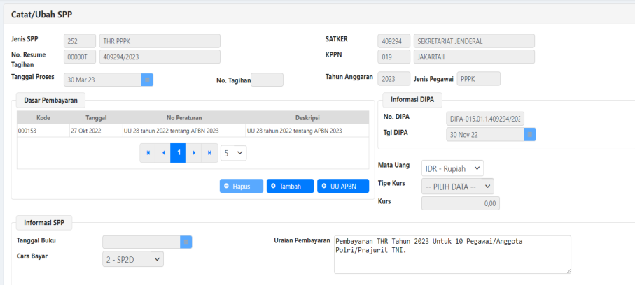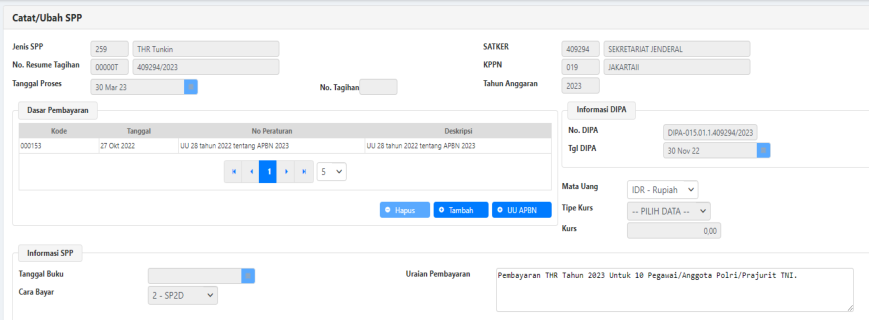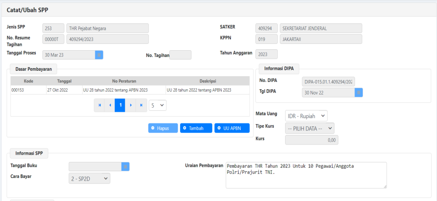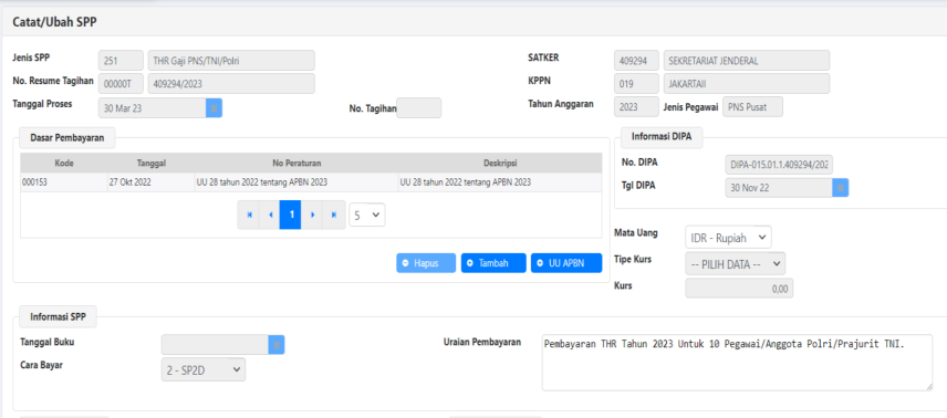 3) Form RUH SPP 251 – THR Gaji PNS/TNI/Polri - Pendetailan.