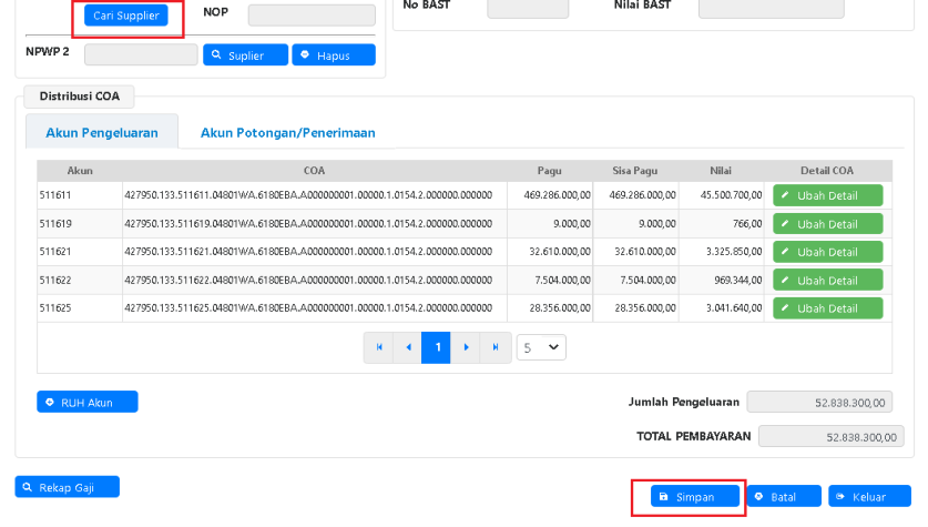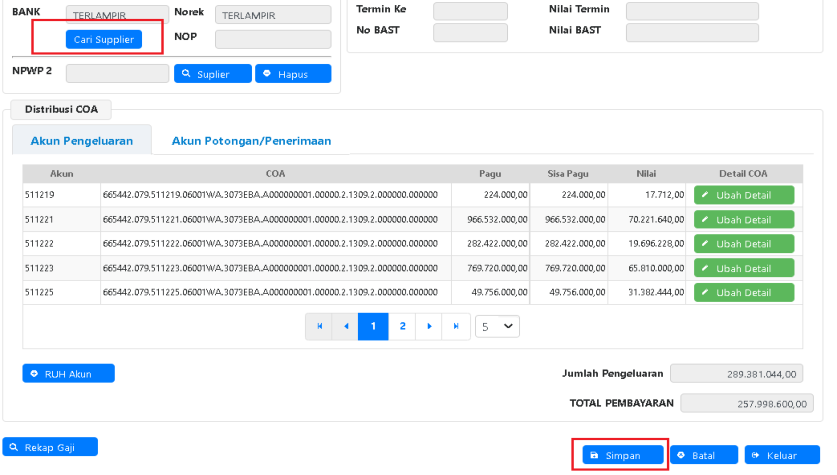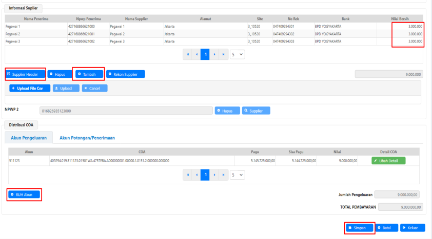 i. Supplier otomatis terinput beserta nilai rupiah per masing-masing pegawai