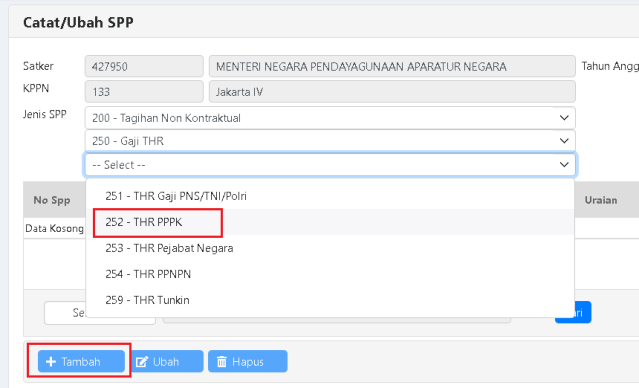 a. Pilih Jenis SPP 252 – THR PPPK.