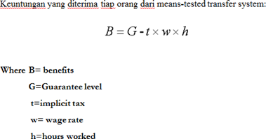 - Mean-tested transfer system mengakibatkan moral hazard/bahaya moral.