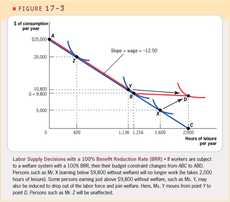 Misal: ada program kesejahteraan dengan 100% BRR. Pemerintah menetapkan garis kemiskinan sebesar $9,800. Garis batas anggaran berubah dari ABC ke ABD.