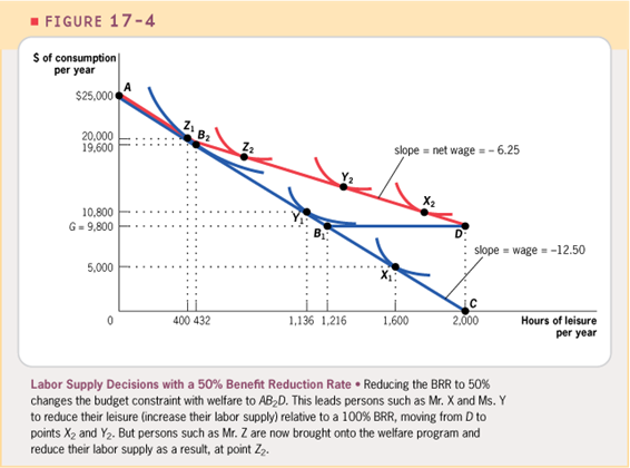 Misal: ada program kesejahteraan dengan 50% BRR. Pemerintah menetapkan garis kemiskinan sebesar $9,800. Garis batas anggaran berubah dari ABC ke AB2D.