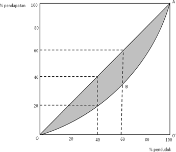 - Kurva Lorenz menggambarkan distribusi kumulatif pendapatan nasional di kalangan lapisan-lapisan penduduk.