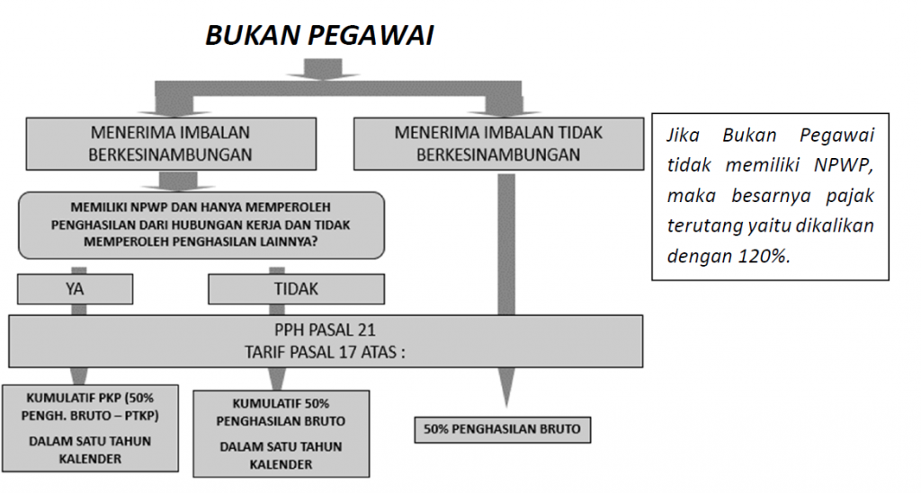 Apabila dalam tahun kalender yang bersangkutan dibayarkan penghasilan kepada yang bersangkutan lebih dari 1 kali, maka PPh Pasal 21 atas pembayaran peghasilan berikutnya dihitung dengan menerapkan tarif Pasal 17 ayat (1) huruf a UU PPh atas jumlah penghasilan bruto kumulatif yang diterima dengan memperhitungkan penghasilan yang diterima sebelumnya.