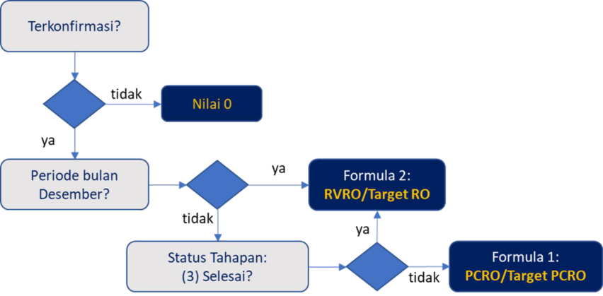 PPK menghitung PCRO-nya dengan basis pro rata . Sementara itu, RVRO telah diakui sebesar 250 Satker sejak bulan Januari karena Satker telah