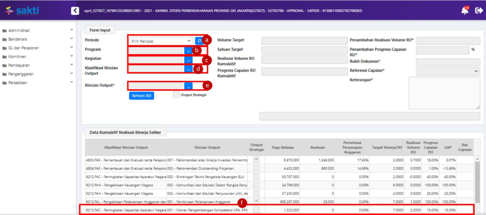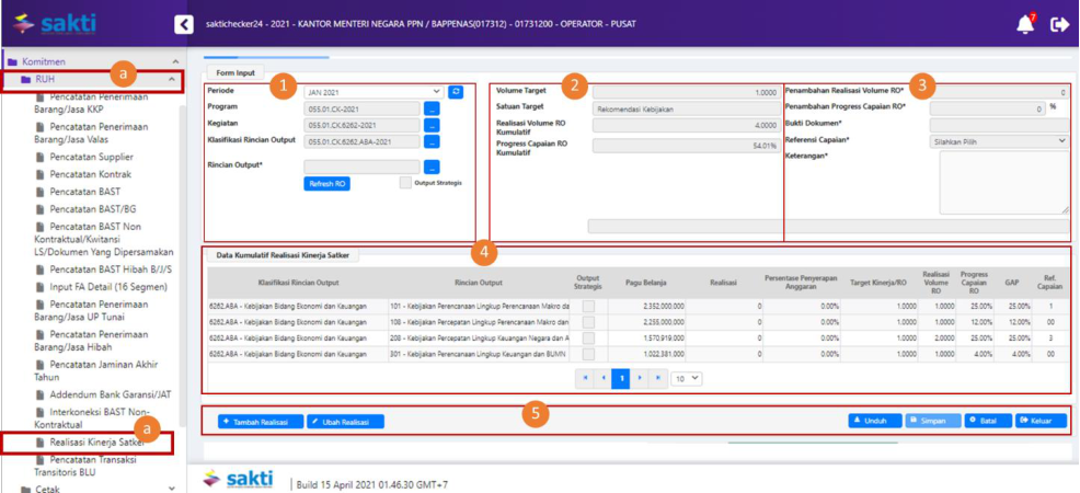 5 Dokumen Input Data Realisasi Kinerja Satker/Capaian RO